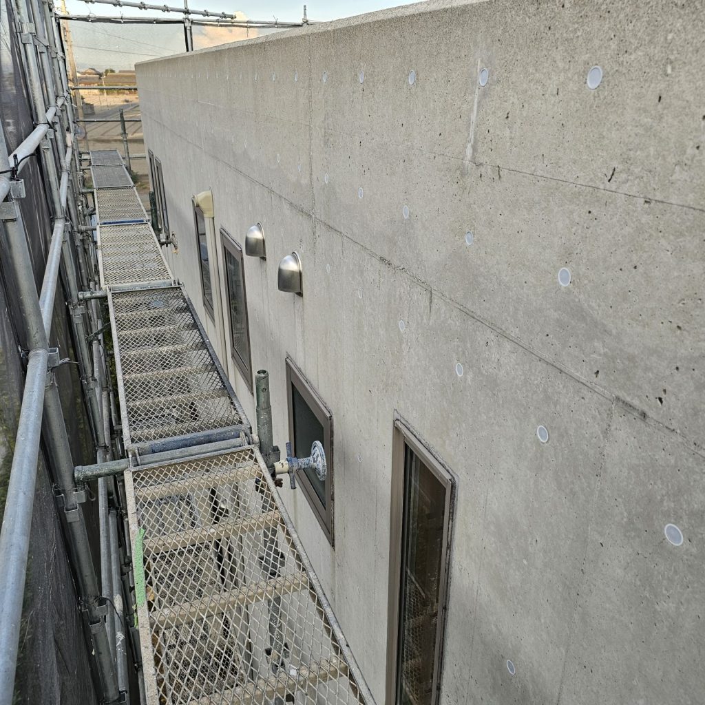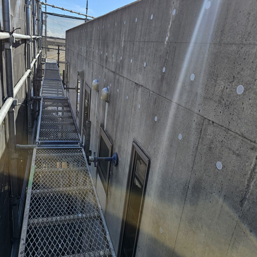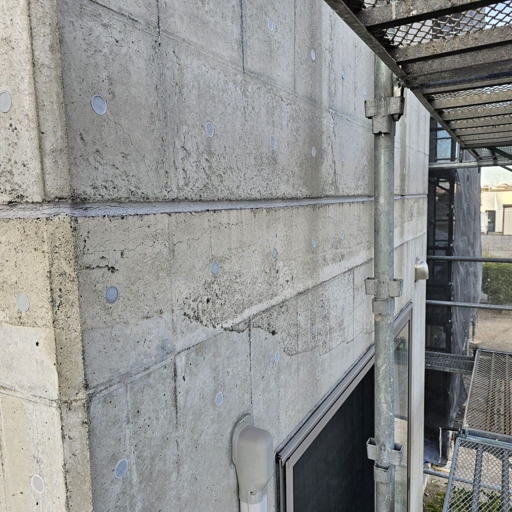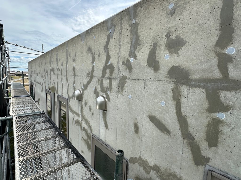 続いて、塗装前に打放しコンクリート(RC)面の下地処理を行います。