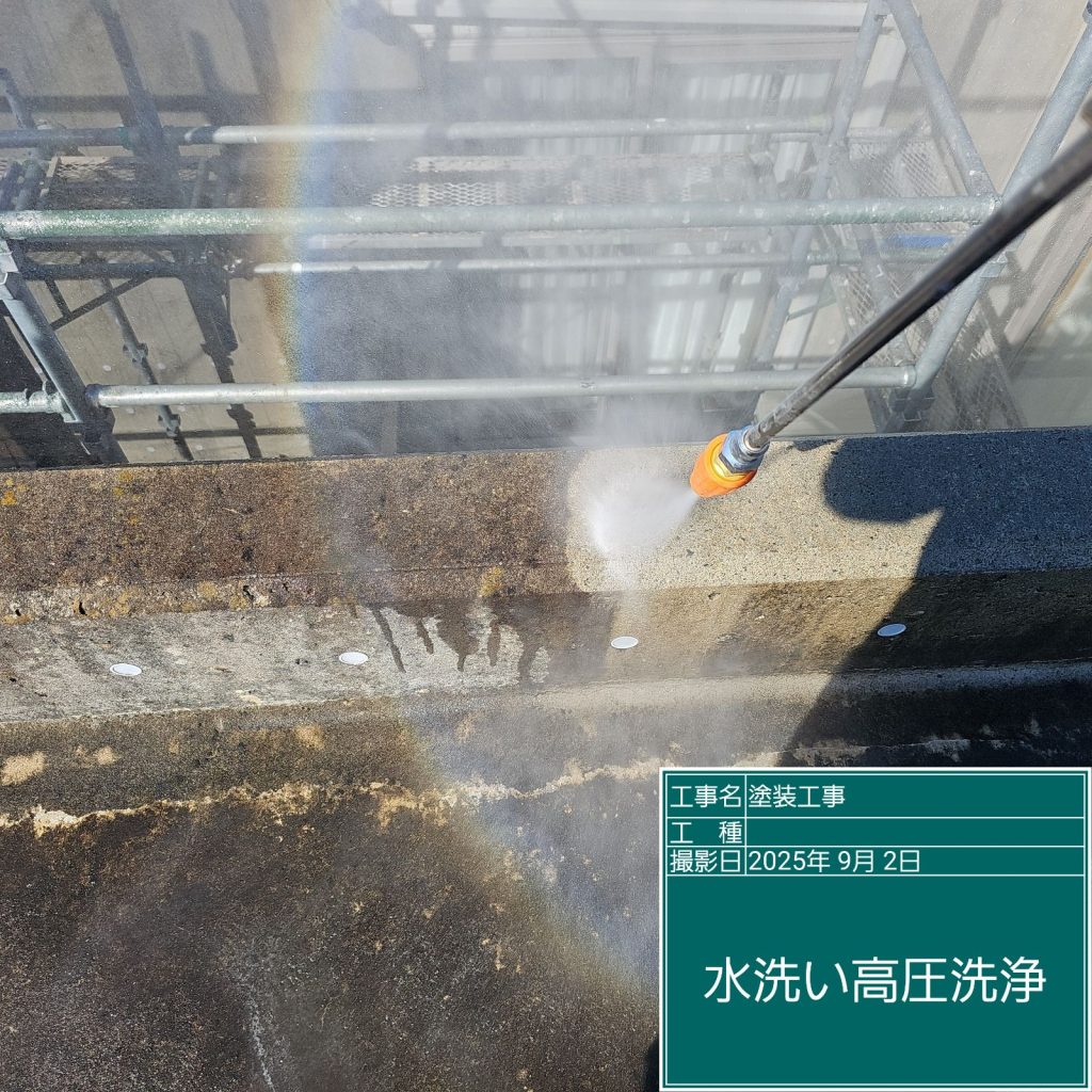 また、塗装前に洗浄を行うことで塗料の付着性の向上や耐久性(美観)にも影響しますので欠かせない工程になります(^^♪