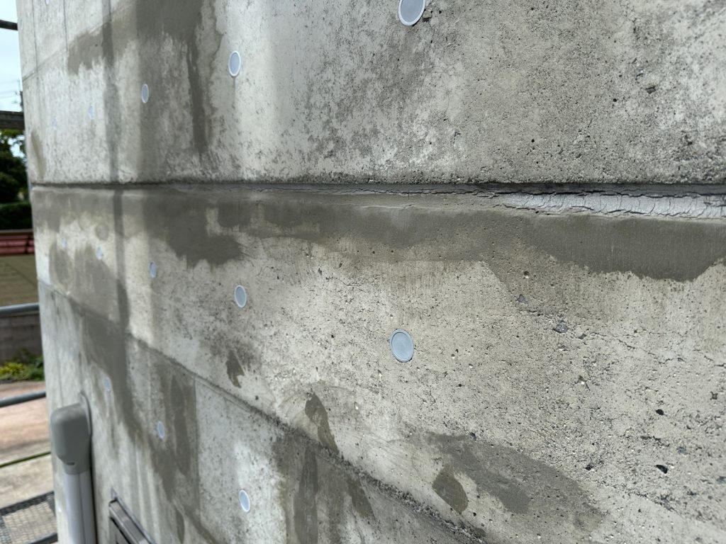 K様邸の外壁は「RC」打放しコンクリートです。元々、打放しコンクリートに塗装は施されていない事が多く、新築時に“撥水剤”を塗布している程度ですので年数が経つとどうしても汚れが付着しやすくなってきます。
