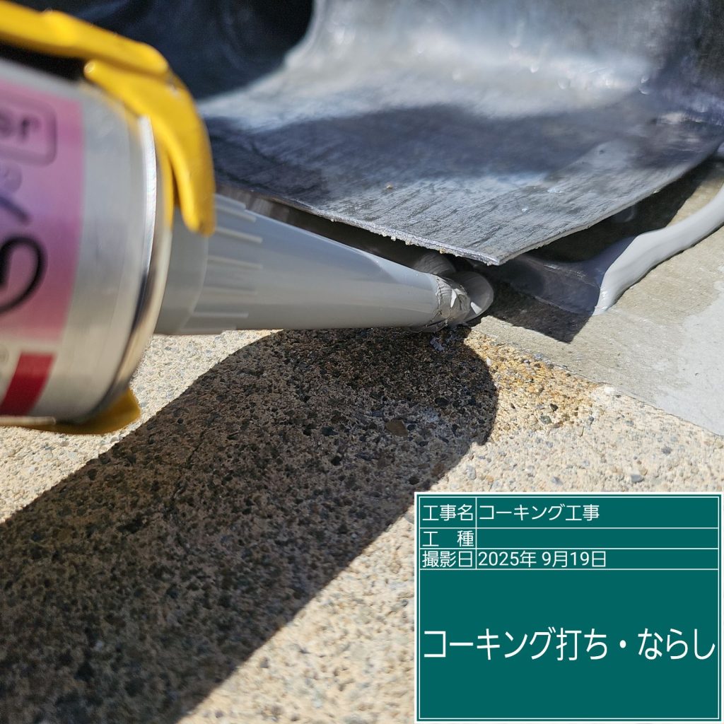 屋上の防水工事です。“立上り”部分から背面に雨水が回り込まないように防水処理を行います。