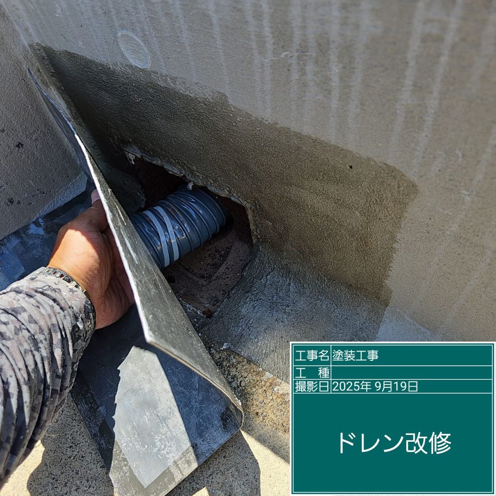 既存のドレンが著しく錆びていましたので“改修用ドレン”の取付を行いました。