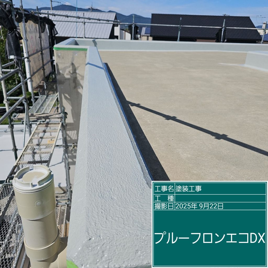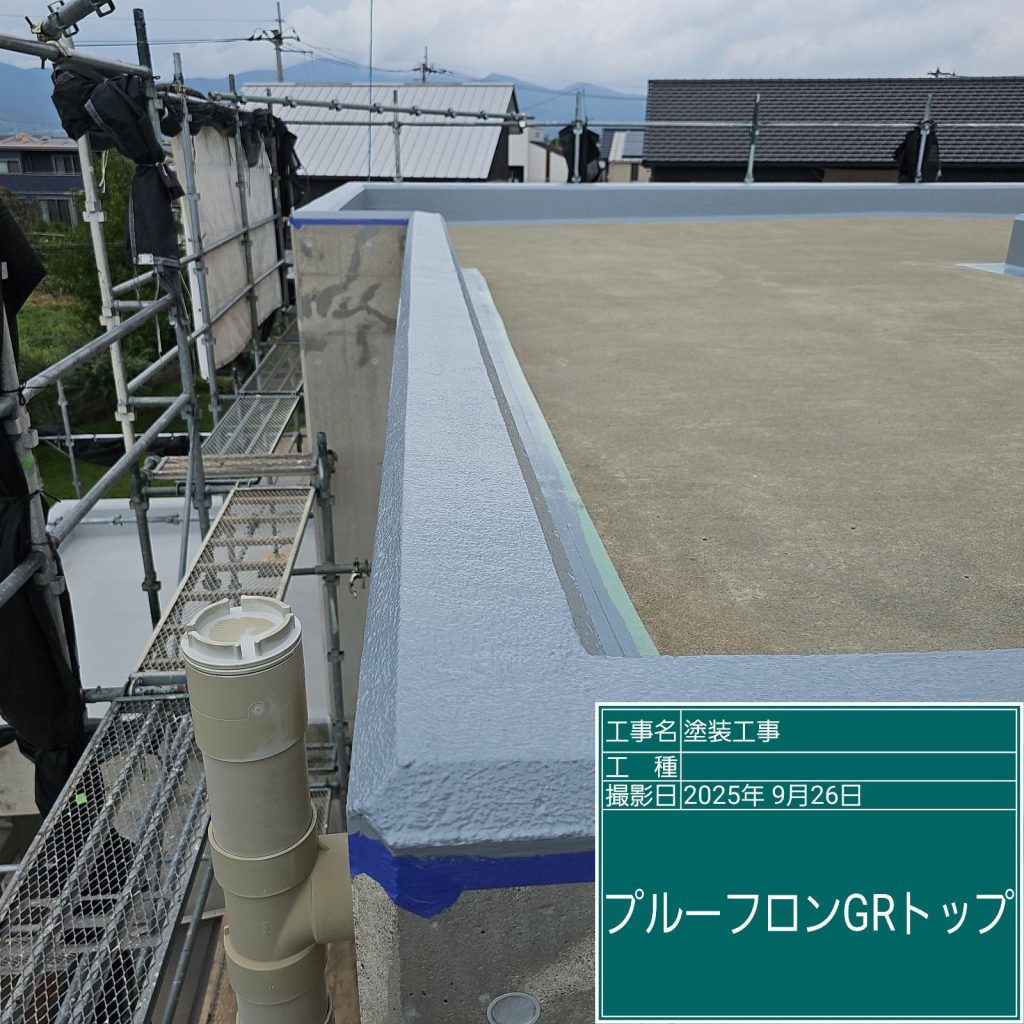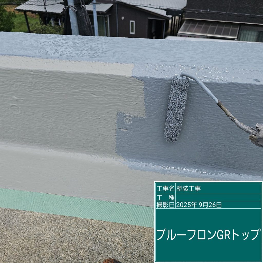 最後に紫外線などから防水層を保護するために「トップコート」の塗装を行いまして完成です👆