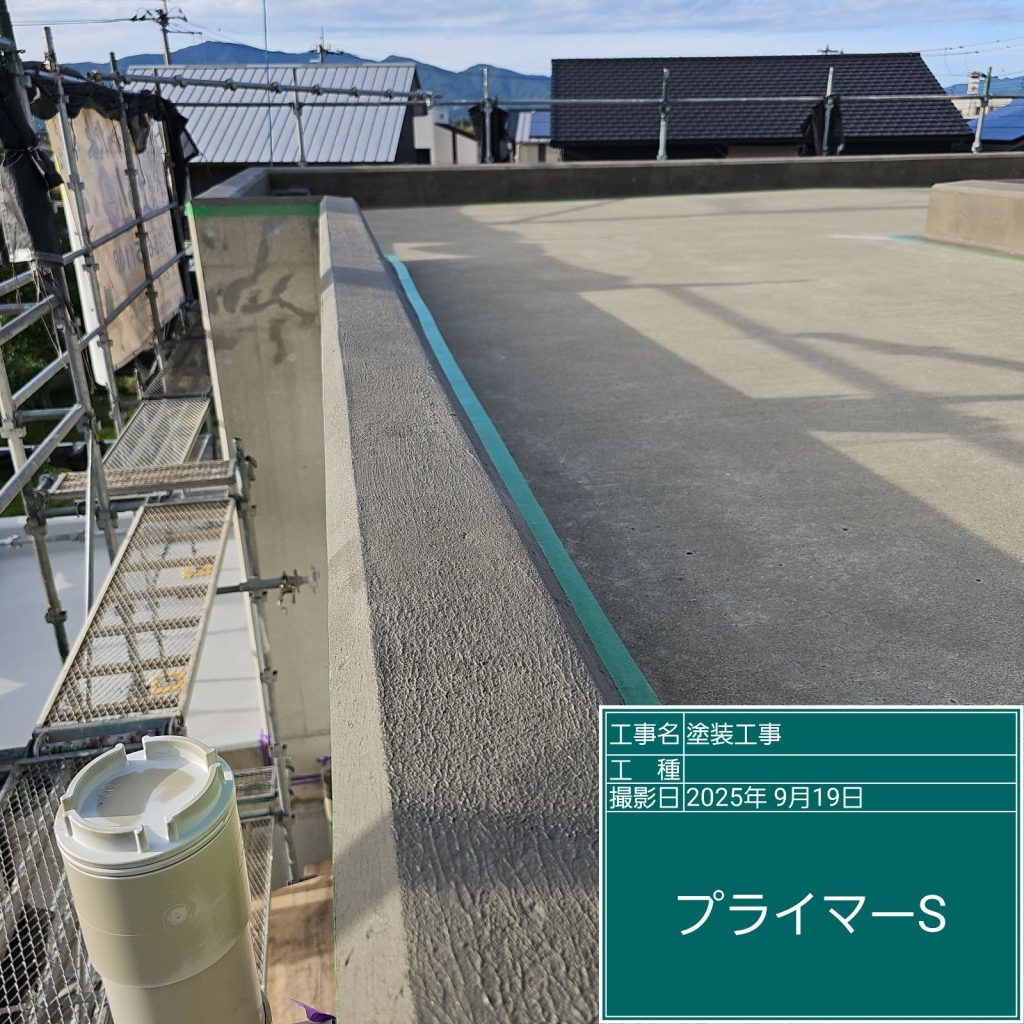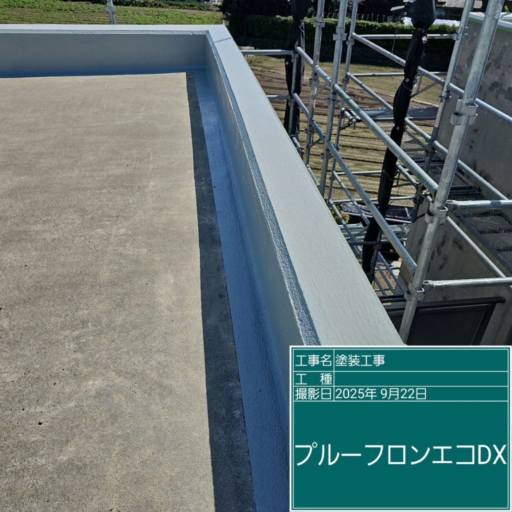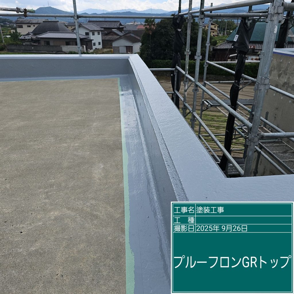 最後に紫外線などから防水層を保護するために「トップコート」の塗装を行いまして完成です👆
