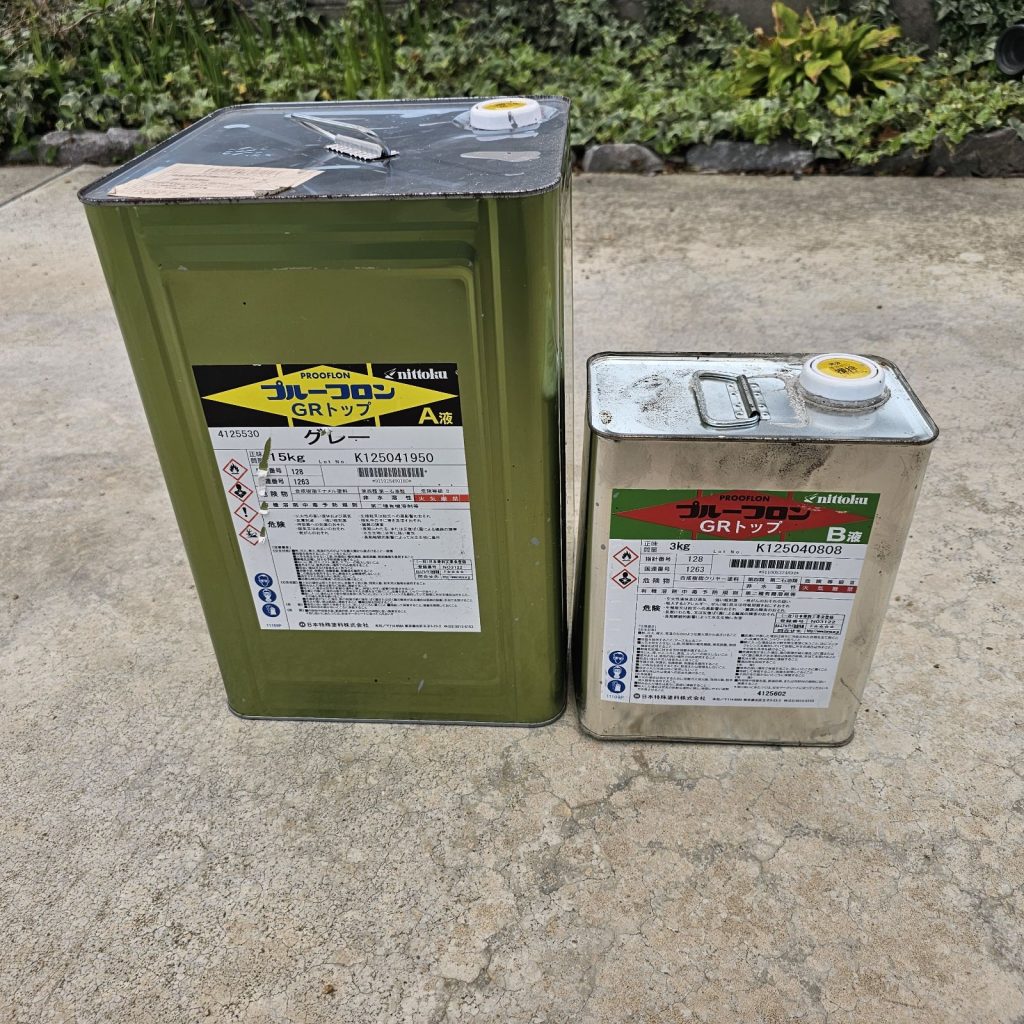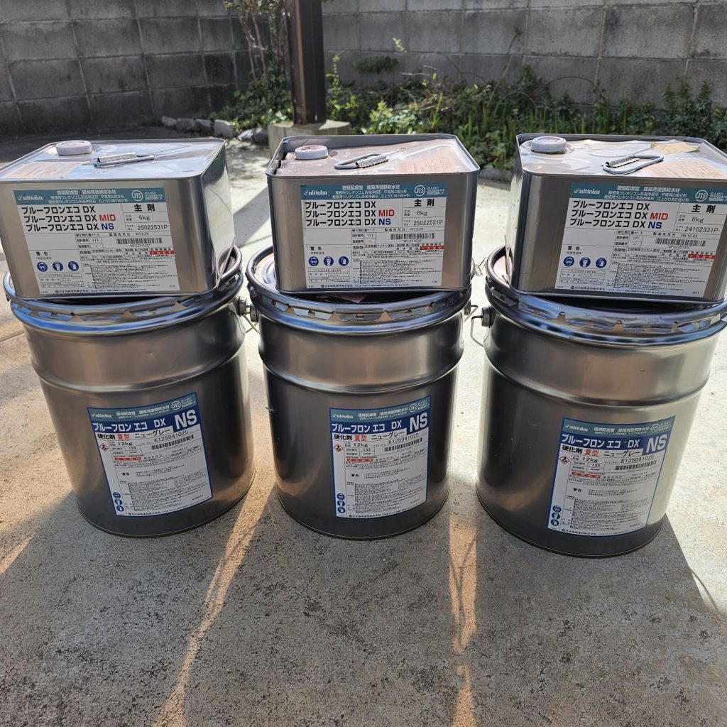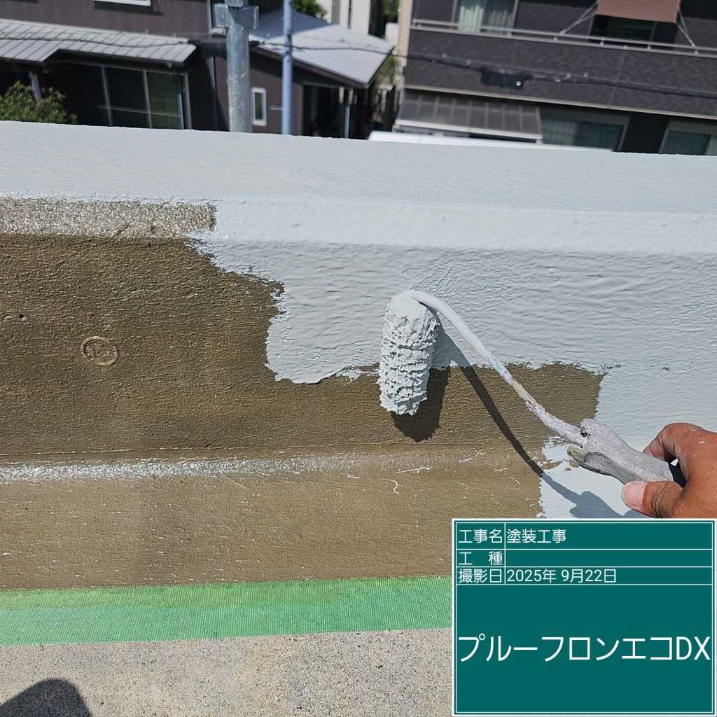 ウレタン塗膜防水はしっかりと厚みを付けないと防水の耐久性に問題がありますので、最低でも2回は塗布しないと意味がありません。