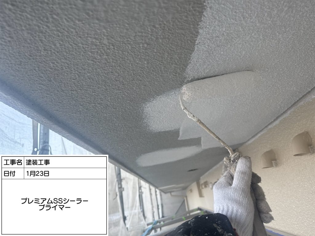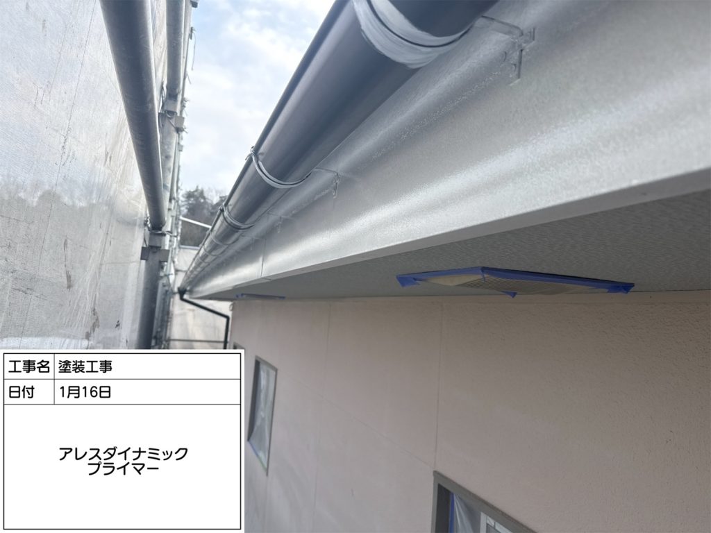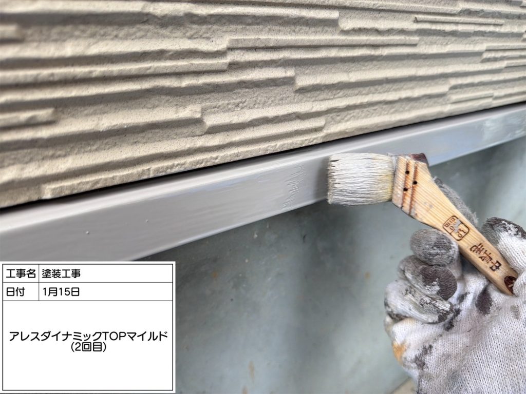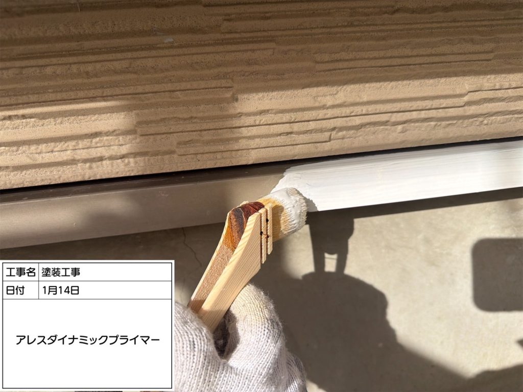 水切りの下塗りにも使用した万能下塗り材「アレスダイナミックプライマー」を塗装し、仕上げ塗料との密着性を向上させます。