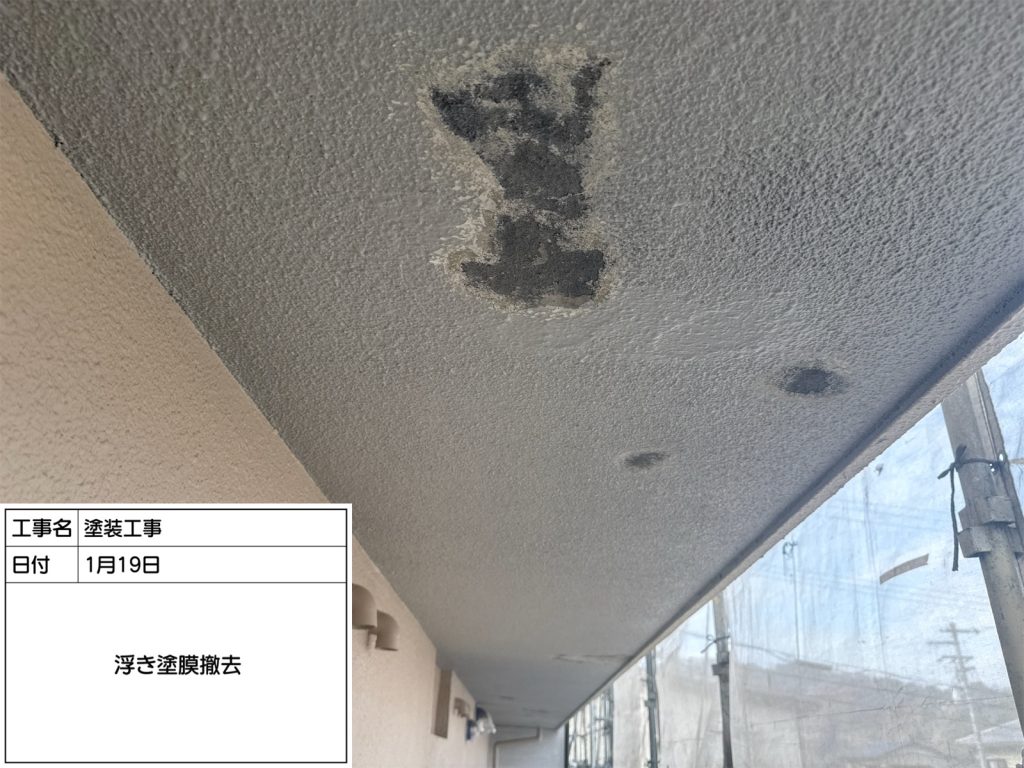 まずは塗膜浮き部の下地調整から行います。
