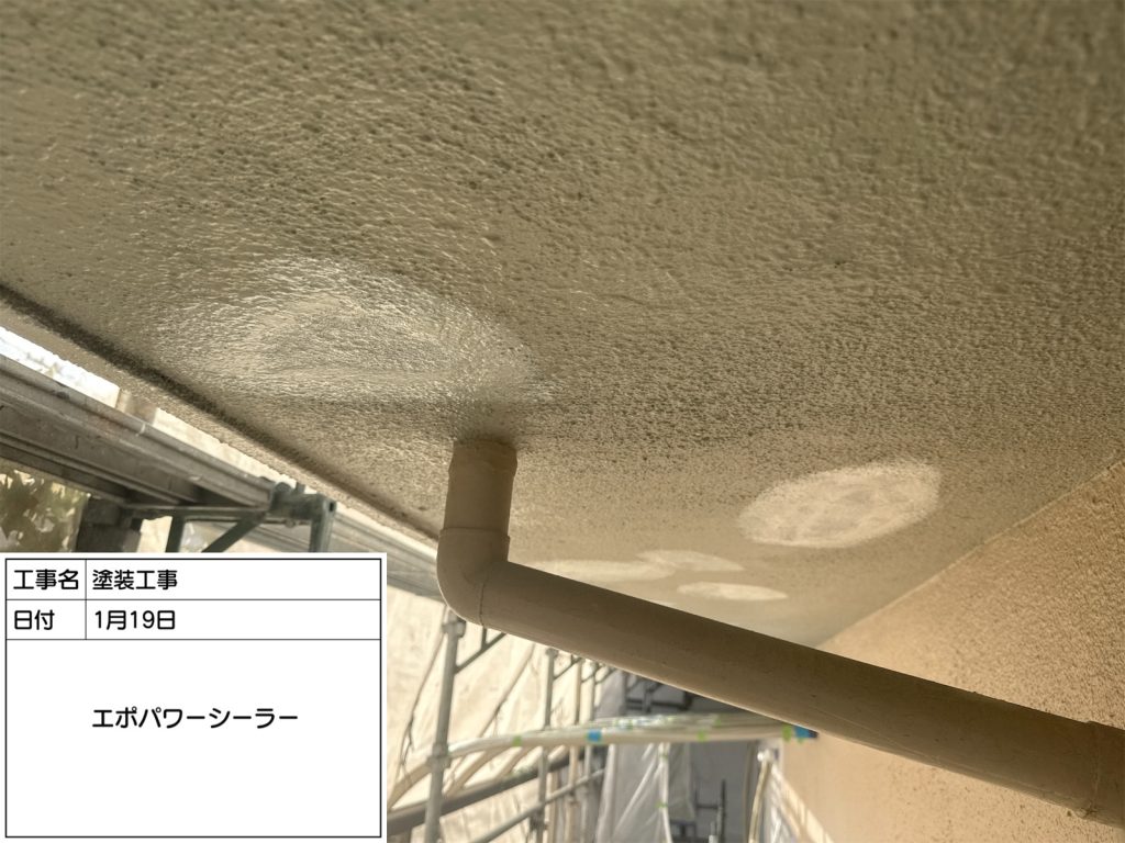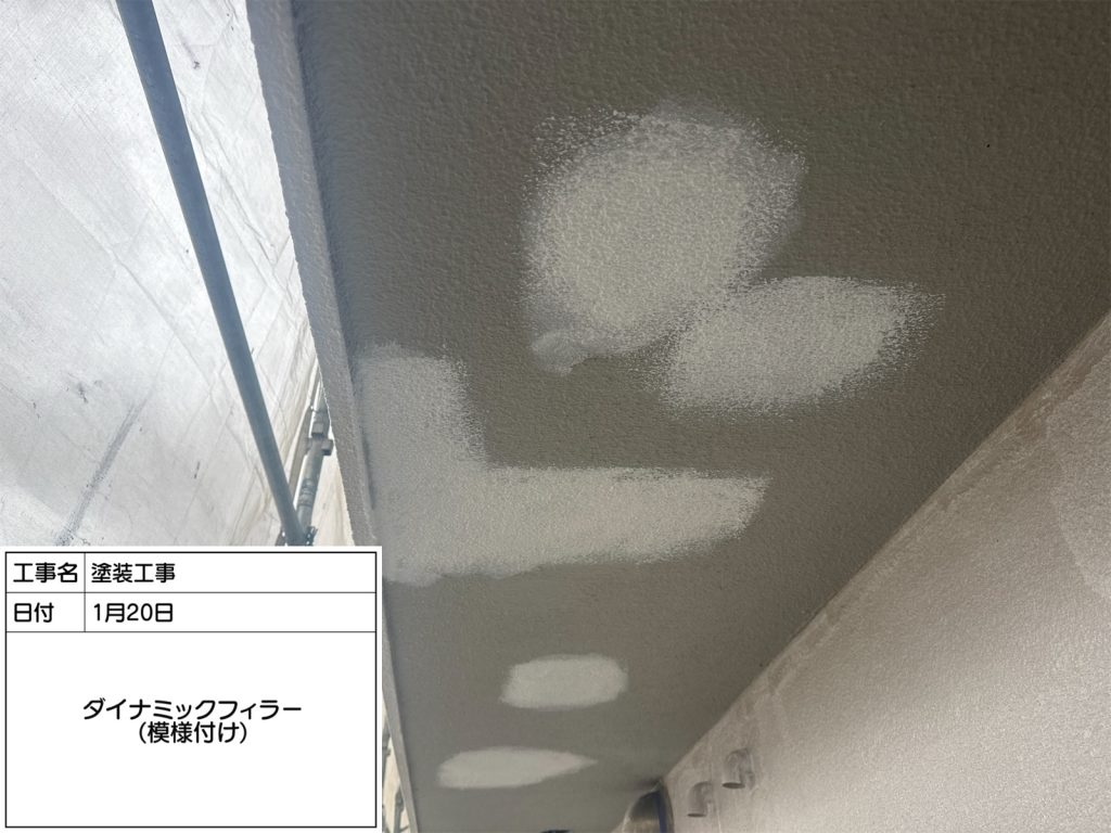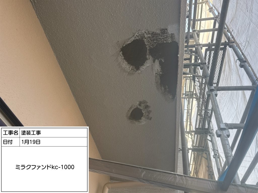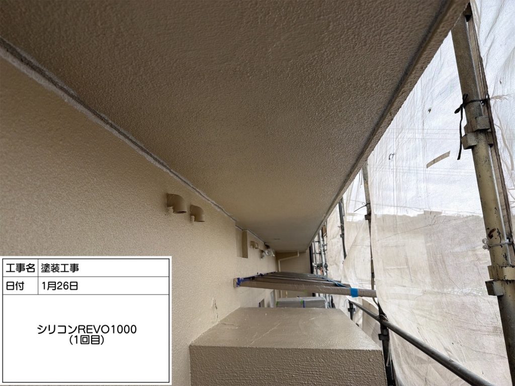 RC(鉄筋コンクリート)の庇塗装の作業状況です。