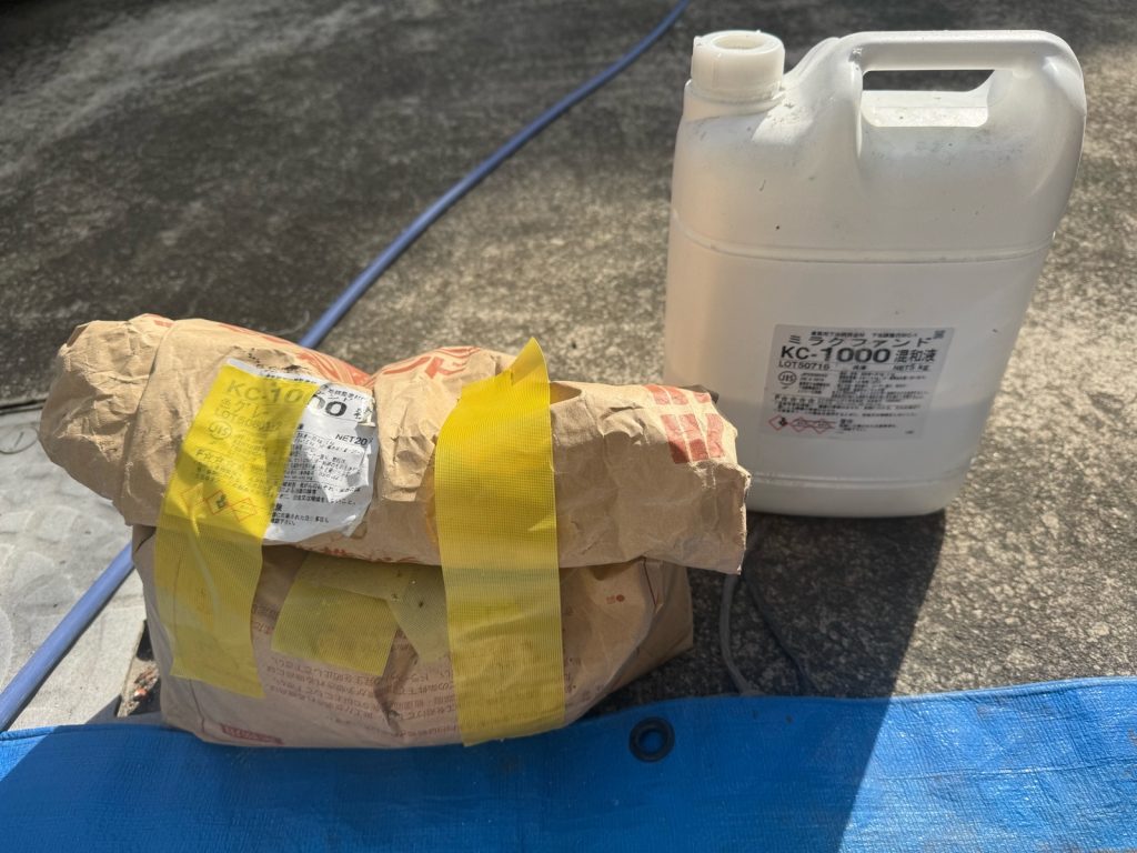 下地調整材「ミラクファンドKC-1000」は、特殊アクリルカチオン系樹脂エマルションを採用した製品で、下地調整と仲介接着の役割を兼ね備え、さらに中性化防止をも加味した万能の性能を有しています。