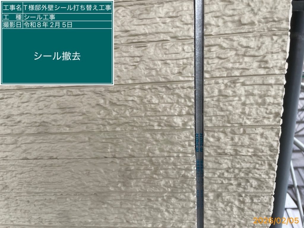 高圧洗浄後、コーキング打ち替え工事に移ります👆