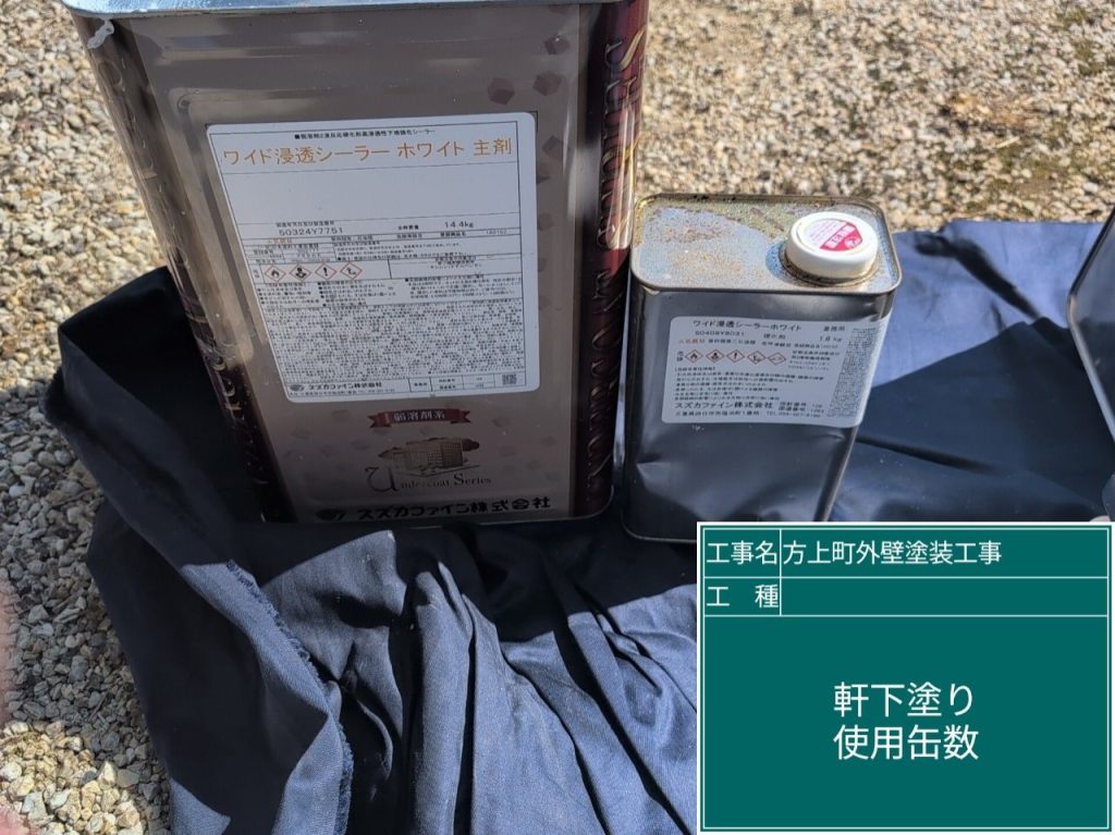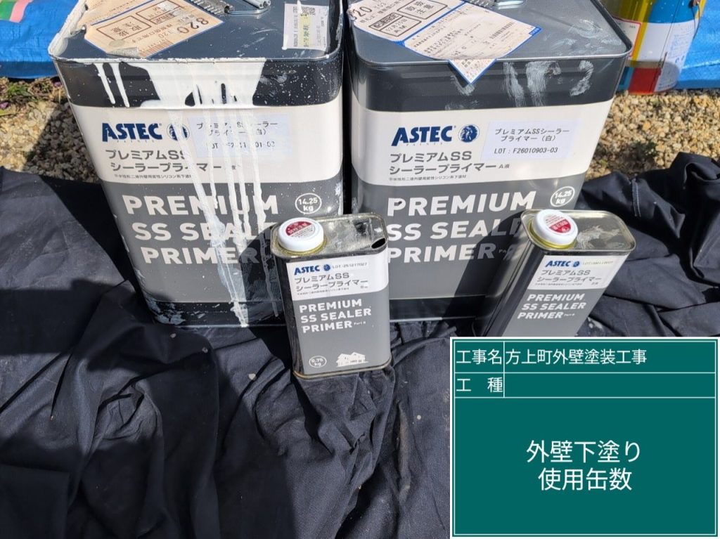 下地処理後、下塗り作業へと進んでいきます。使用塗料はアステックペイント「プレミアムSSシーラープライマー」。