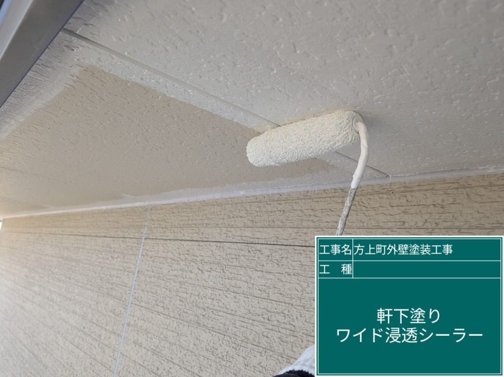 下地処理後、塗装作業へと進んでいきます。下塗り材は既存の材質との密着性を高めるだけでなく、塗料の吸い込みを防止する役割も果たします。