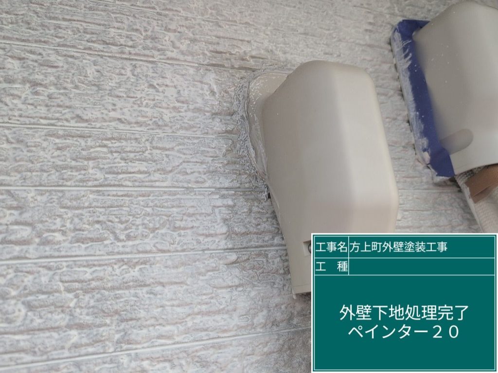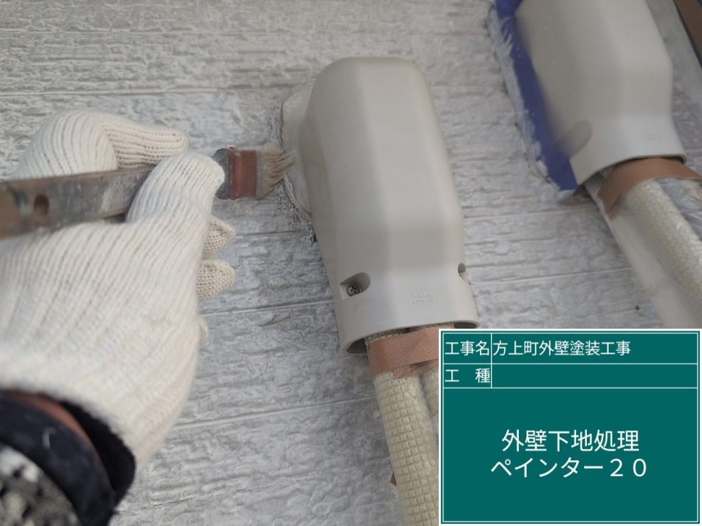 外壁材との接着性を向上させるために専用のプライマーを塗布します。